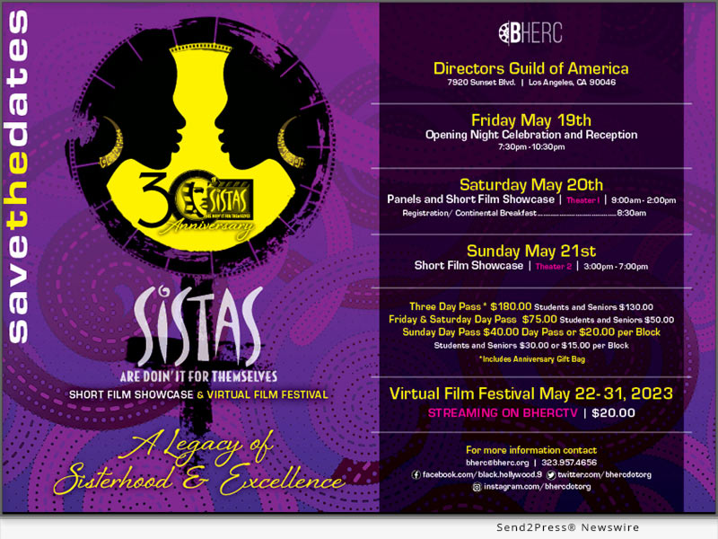 (HOLLYWOOD, Calif.) — NEWS: The Black Hollywood Education and Resource Center (BHERC) will host the 30th Anniversary of its Sistas Are Doin’ It For Themselves Short Film Showcase and Virtual Film Festival. All in-person events will be held May 19-21, 2023 at the Directors Guild of America in Los Angeles, California. The Virtual Festival will be streamed via BHERC.TV from May 22-31.