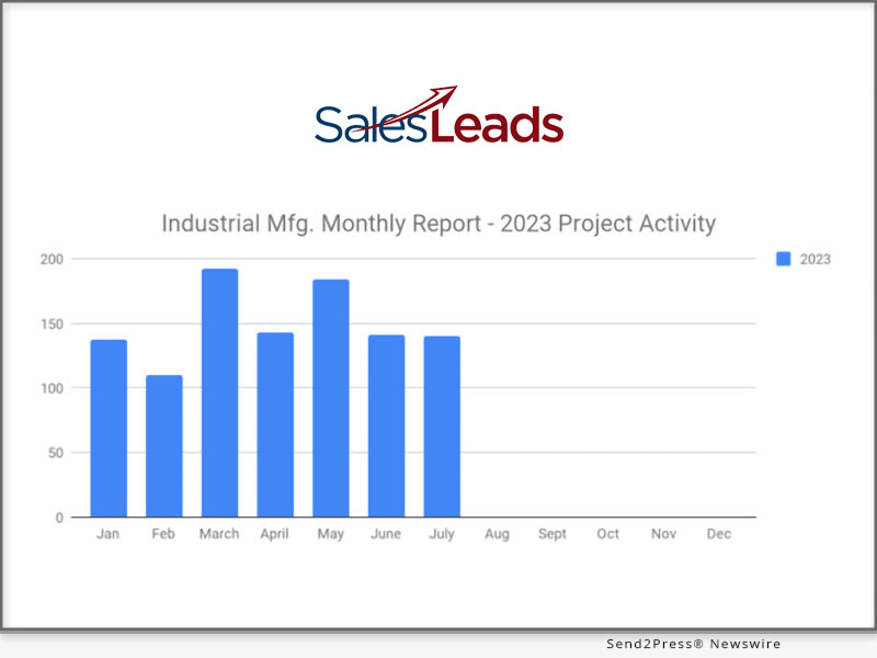 (JACKSONVILLE BEACH, Fla.) — NEWS: SalesLeads announced today the July 2023 results for the new planned capital project spending report for the Industrial Manufacturing industry. The Firm tracks North American planned industrial capital project activity; including facility expansions, new plant construction and significant equipment modernization projects. Research confirms 140 new projects in July as compared to 141 in June, unchanged for the Industrial Sector.