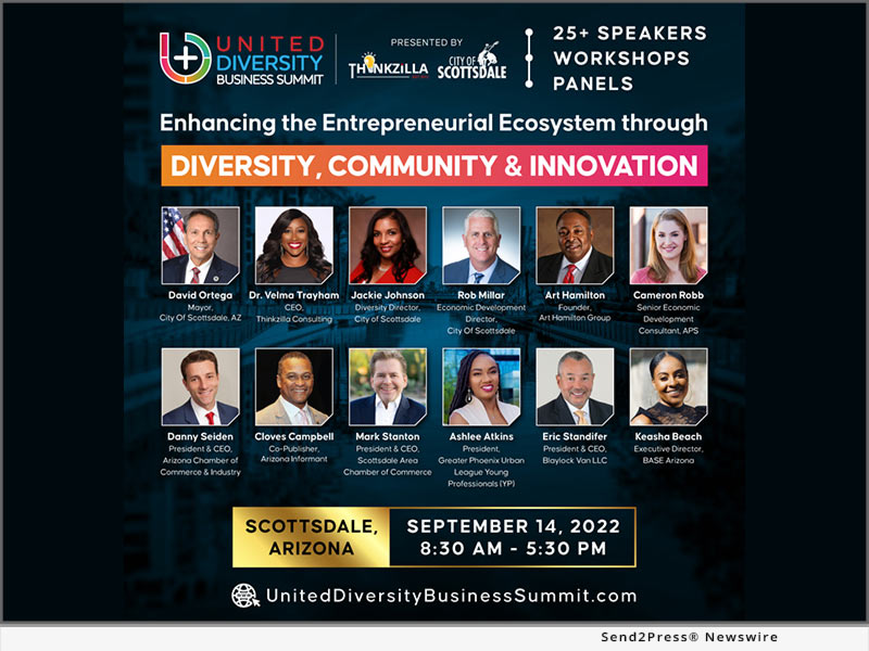 The 2022 United Diversity Business Summit will be held from 8:30 a.m. to 5:30 p.m. at the Scottsdale Center for the Performing Arts Center with a theme of “Enhancing the Entrepreneurial Ecosystem through Diversity, Community and Innovation.” It is free for attendees.