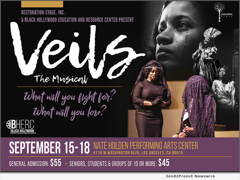 (HOLLYWOOD, Calif.) — NEWS: The Black Hollywood Education and Resource Center (BHERC) has teamed with Restoration Stage (Washington, D.C.) to bring the popular musical “Veils” to the Los Angeles area for a short run Thursday, September 15, and Friday, September 16 at 8 p.m.; Saturday, September 17 at 2 and 8 p.m. and Sunday, September 18 at 8 p.m. at the Nate Holden Performing Art Center in Los Angeles, California. Purchase tickets at https://bherc.org/.