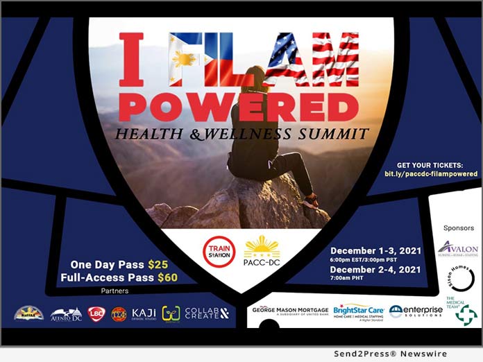 (FALLS CHURCH, Va.) — NEWS: The Philippine American Chamber of Commerce of Metro Washington DC (PACC-DC), in collaboration with Trainstation Philippines is spearheading a three-day virtual summit to promote health and wellness on December 1-3 at 6 p.m. EST entitled, “I FIL-AM POWERED.” Says PACC-DC PRO, Olma Inocentes, “The title is a play at Fil-Am, short for Filipino-American, and empowerment because we believe that focusing on health and wellness promotes and supports personal growth, leading to self-empowerment. The summit is open to everybody. Health and wellness are universal concerns and ultimately, a global undertaking. But we need to start somewhere and where better to start than ourselves, our family and our community?”